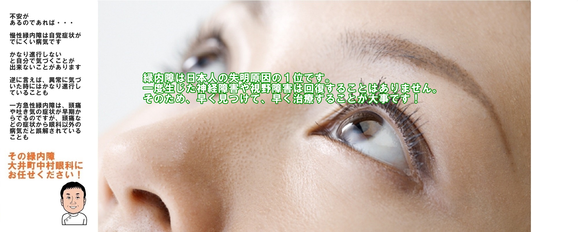 自分で気付きやすいものから、気付きにくいものまでいろいろなタイプの緑内障があります。